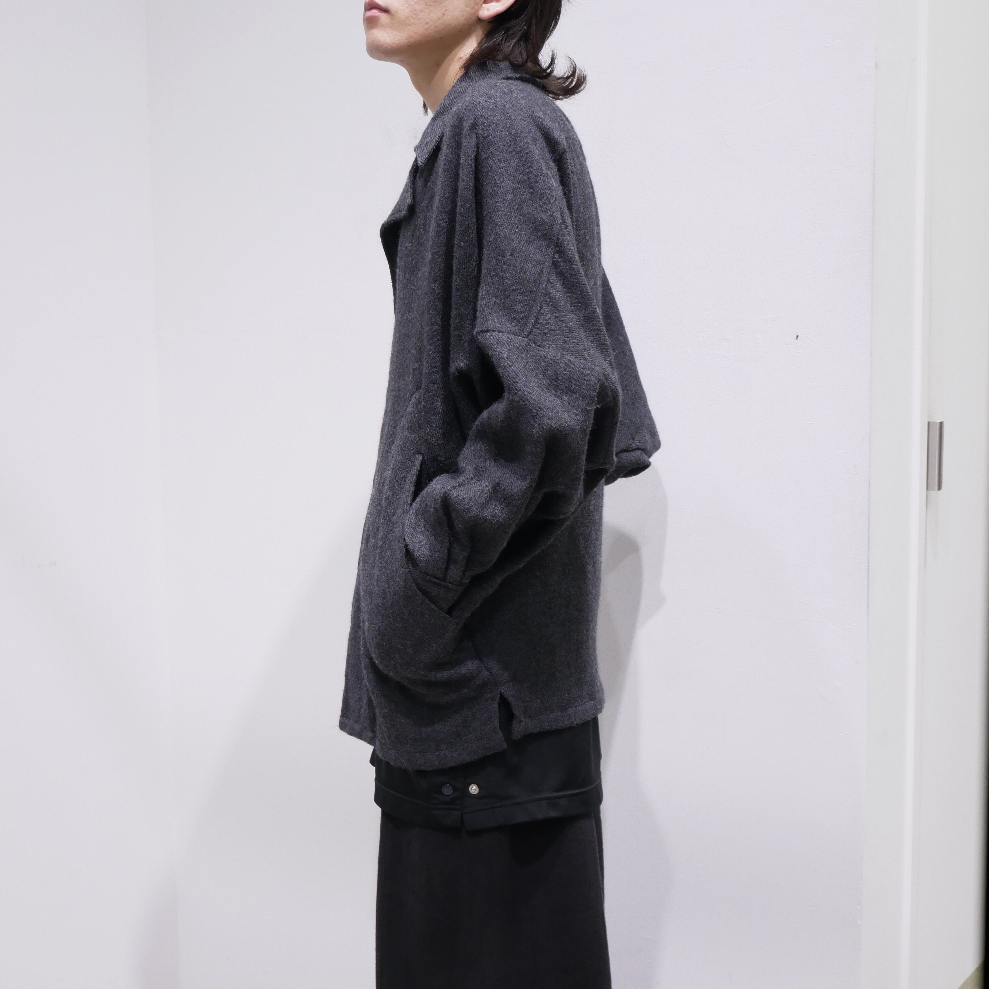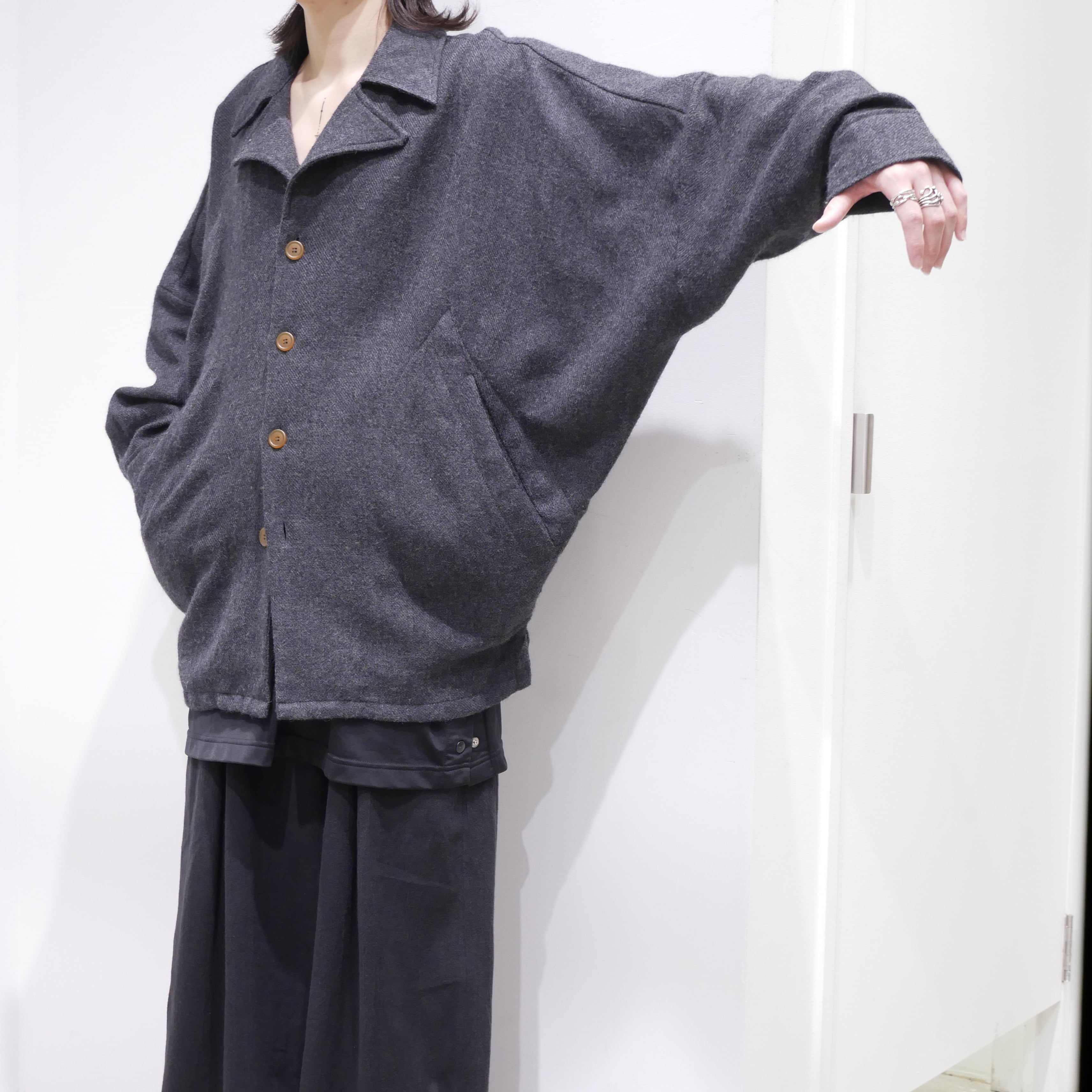 着丈より身幅の方が10cm以上大きいスーパーワイドシルエット。ドルマンスリーブで腕を広げた際のシルエットも良く羽織るだけでインパクト抜群。裏地無しですが中に着込めるサイズ感だと思うので1軍アウターをお探しの方にはぜひ検討していただきたい1着です○
