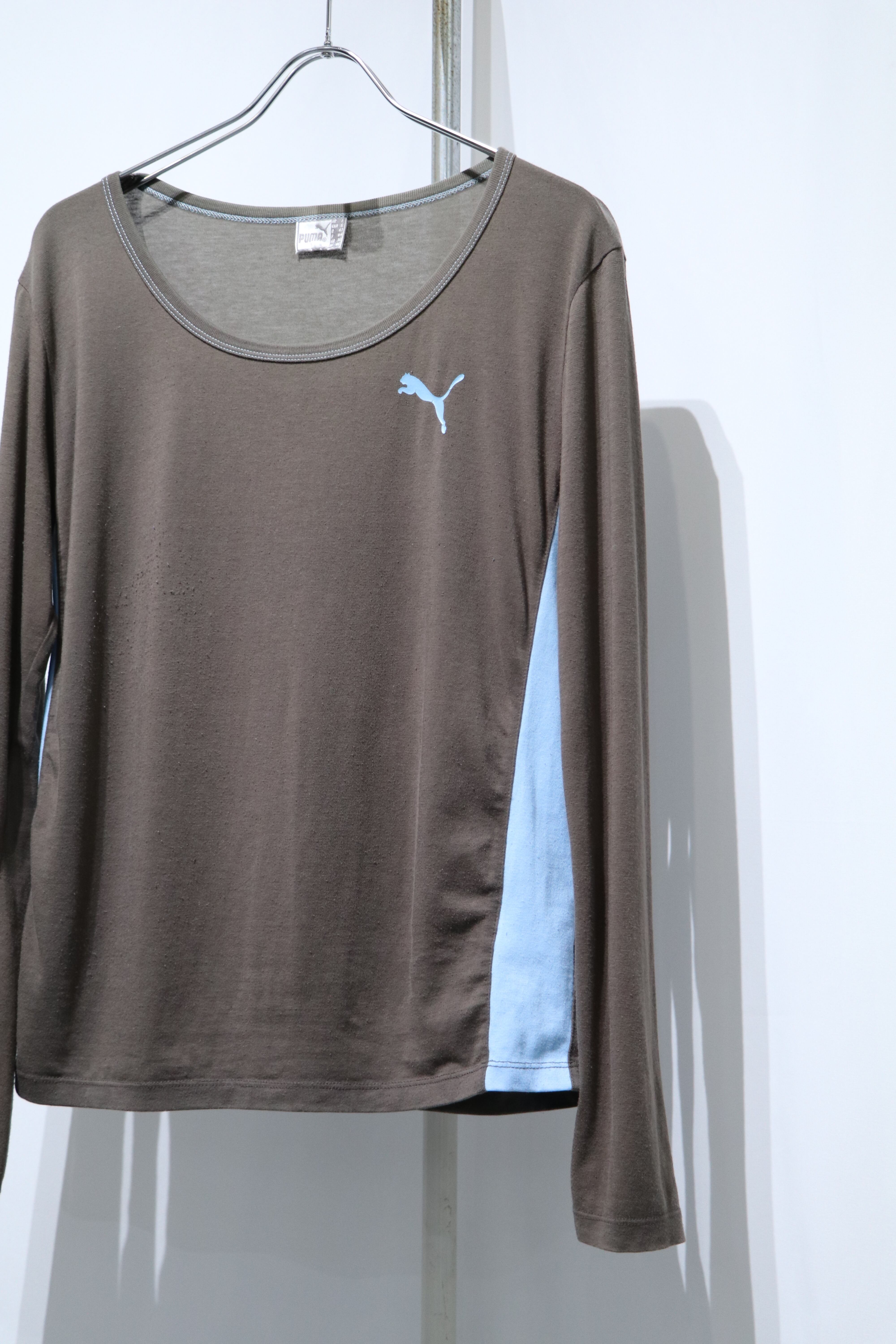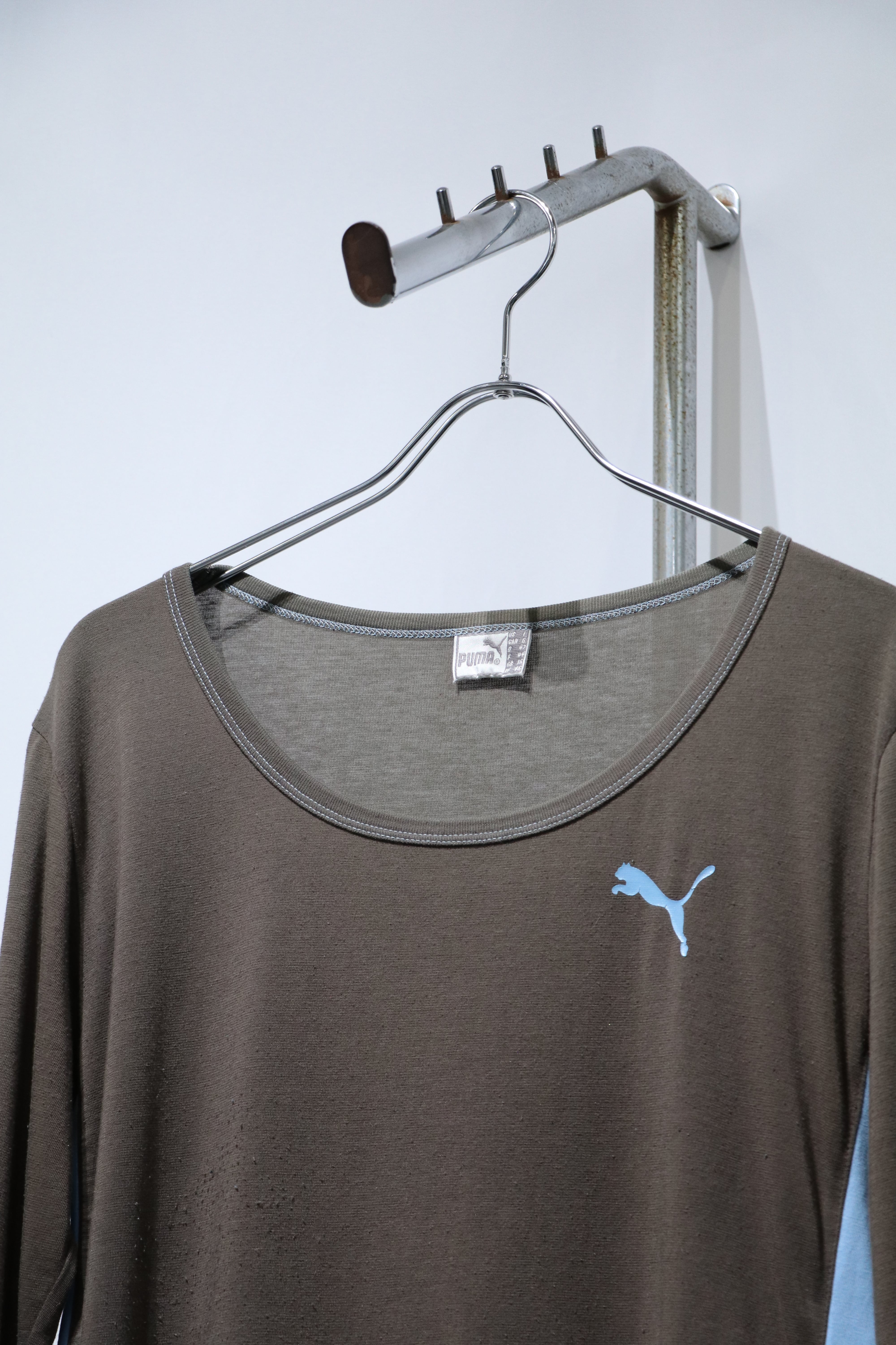 80-90年代のPUMAからストレッチロングスリーブトップ。滑らかな感触と伸縮性のある素材が特徴で、動きやすさと快適さがありシンプルなデザインながらも、スタイリッシュに決まる1着。緩い首元で遊べるのもコーデの楽しみになるかと!