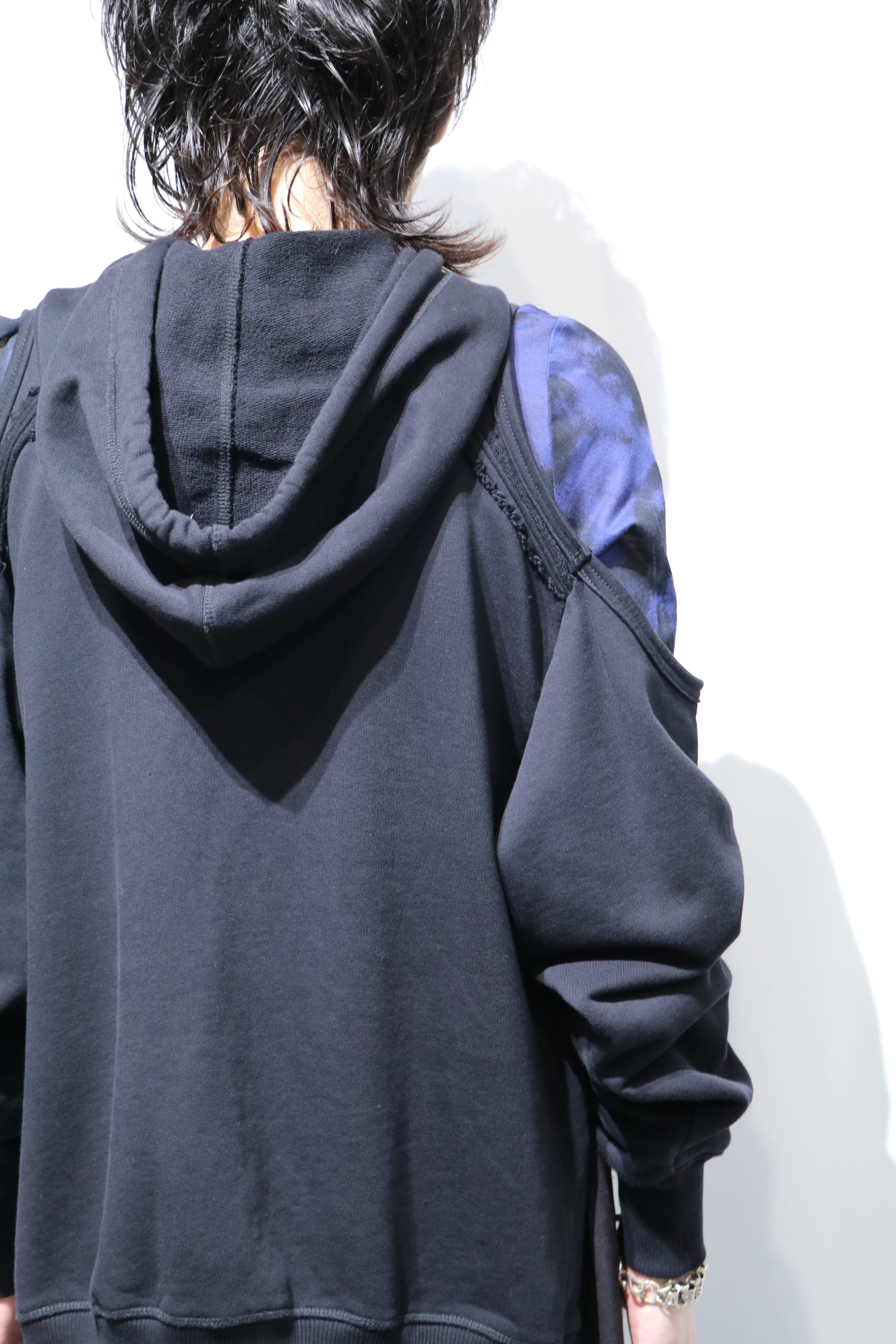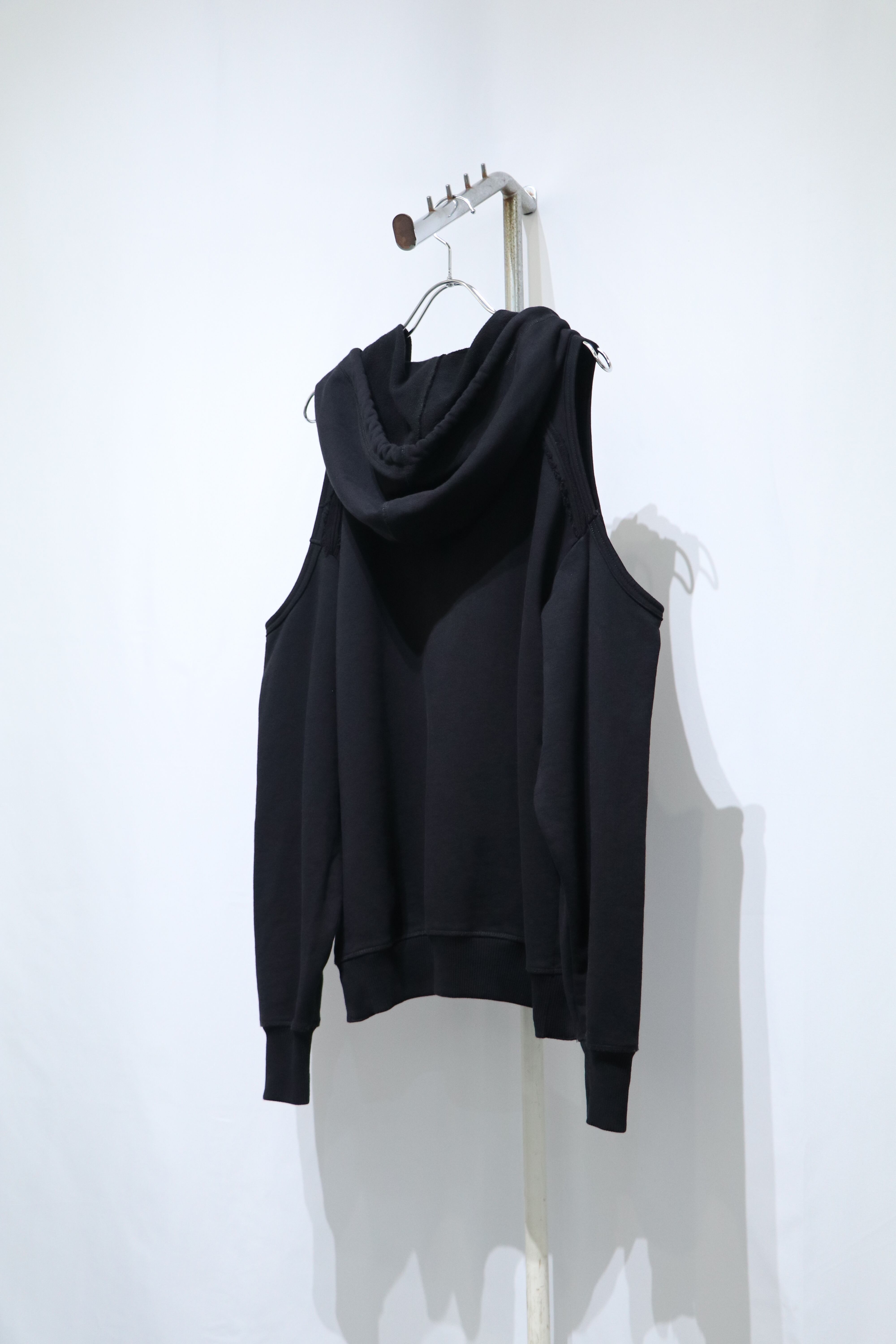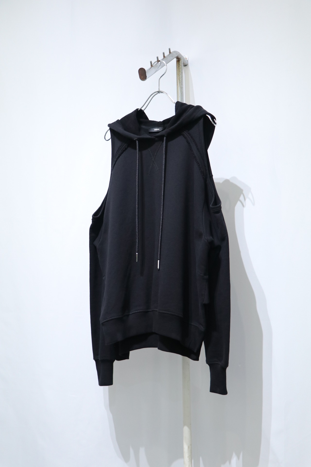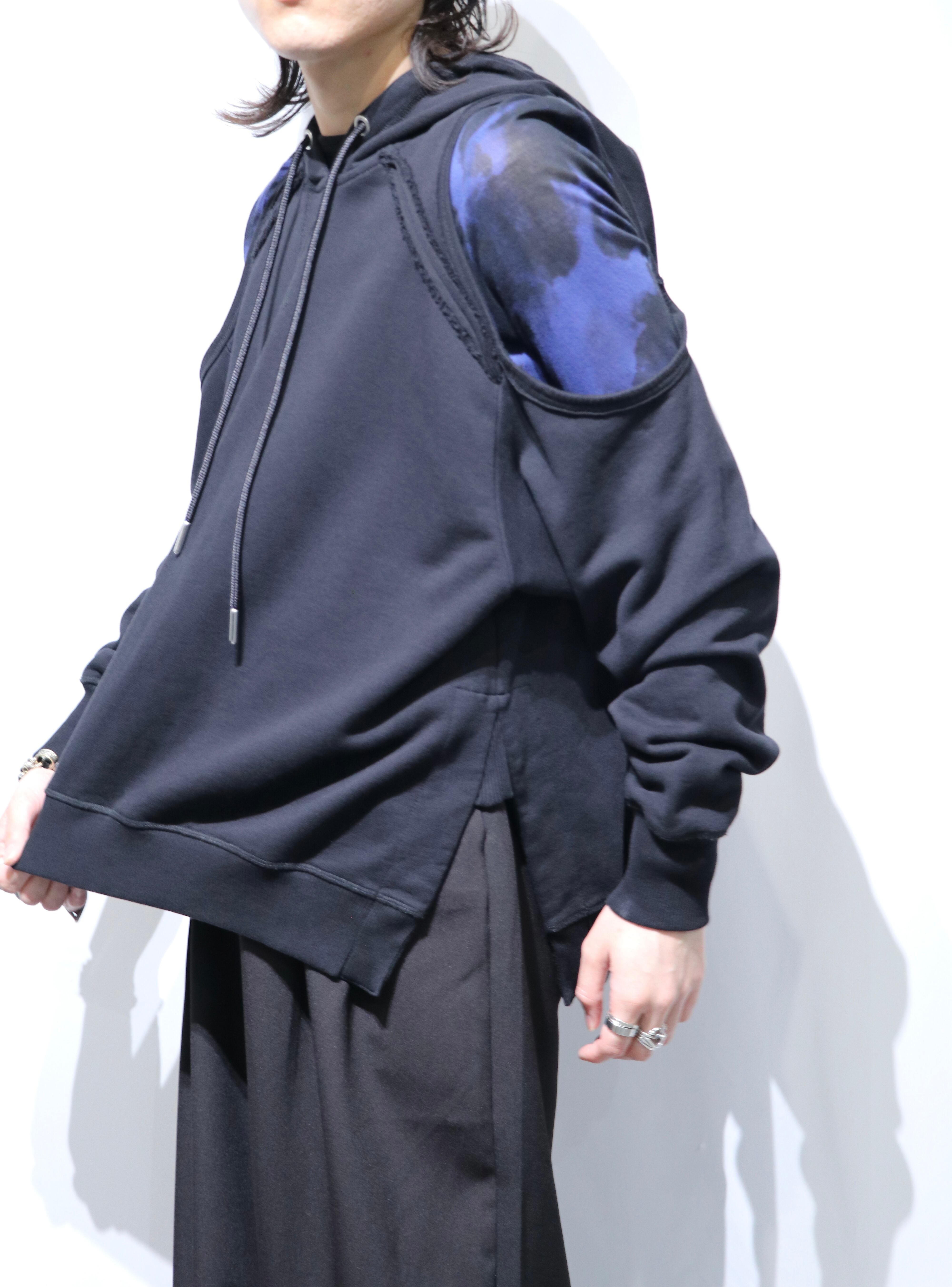 大きなホールデザインが特徴的なフーディー。ユニークなデザインで写真6枚からの様なインナーとの合わせ、これからの季節ダウンベストとの合わせも良さそうです!リラックスサイズなので1枚でも○