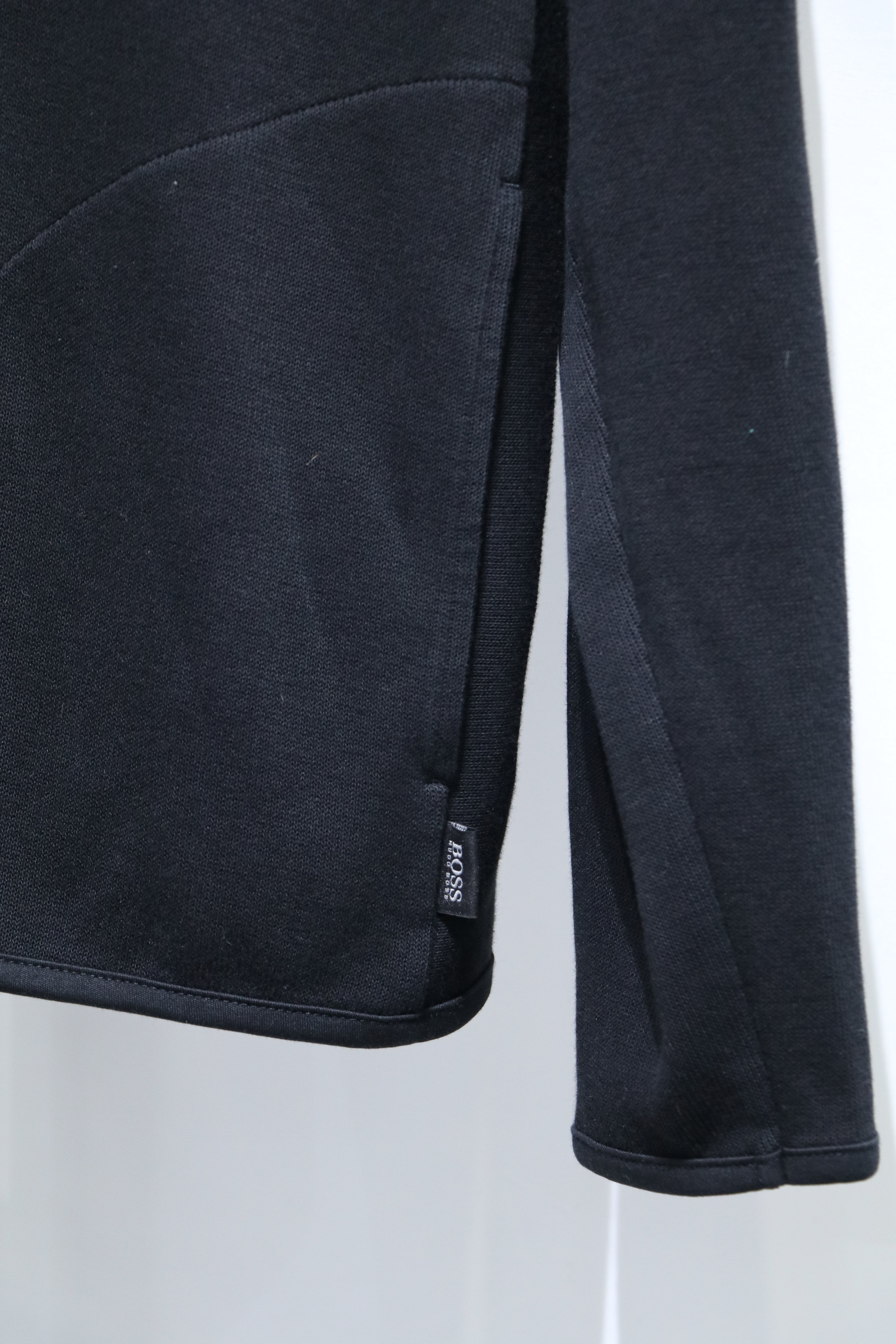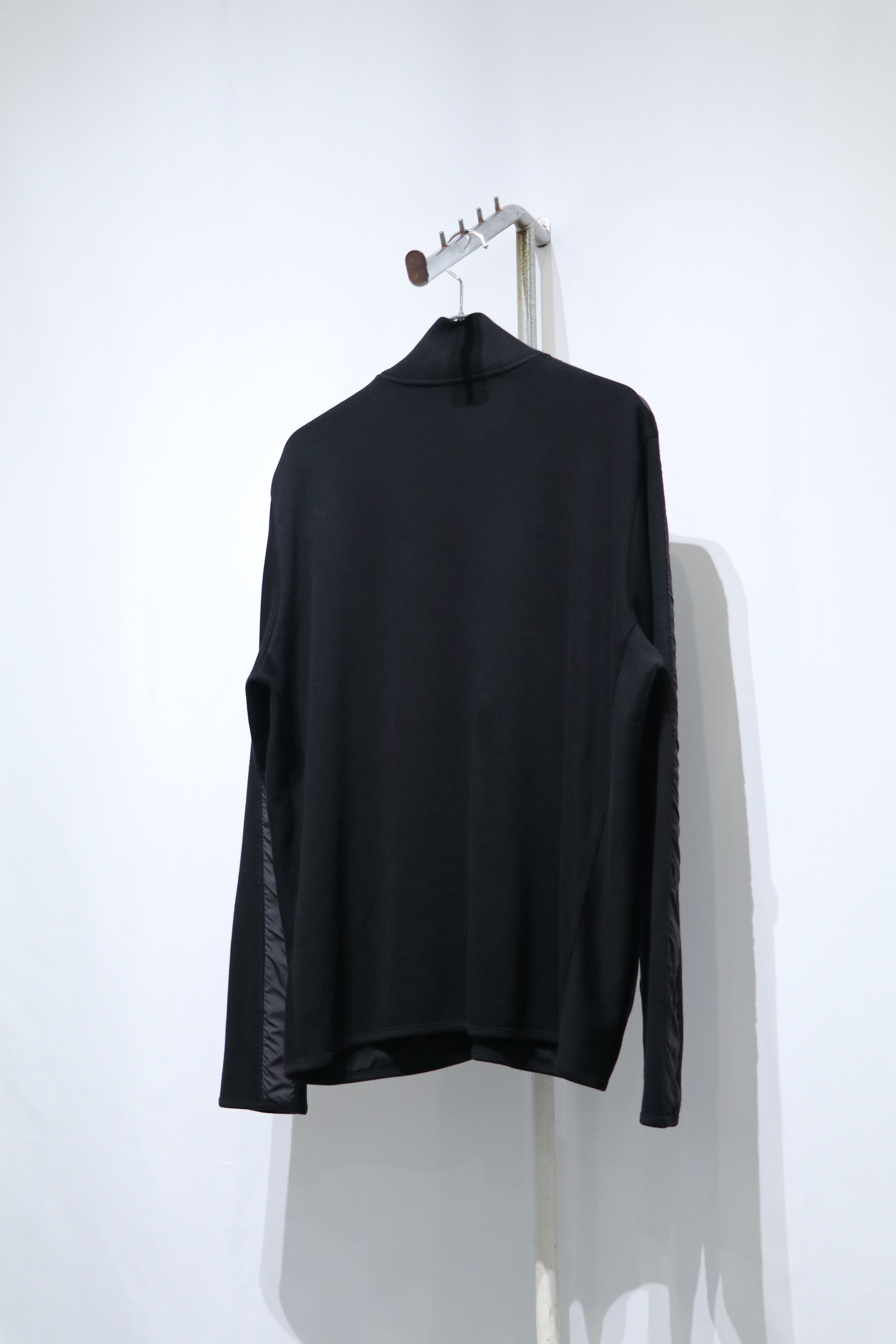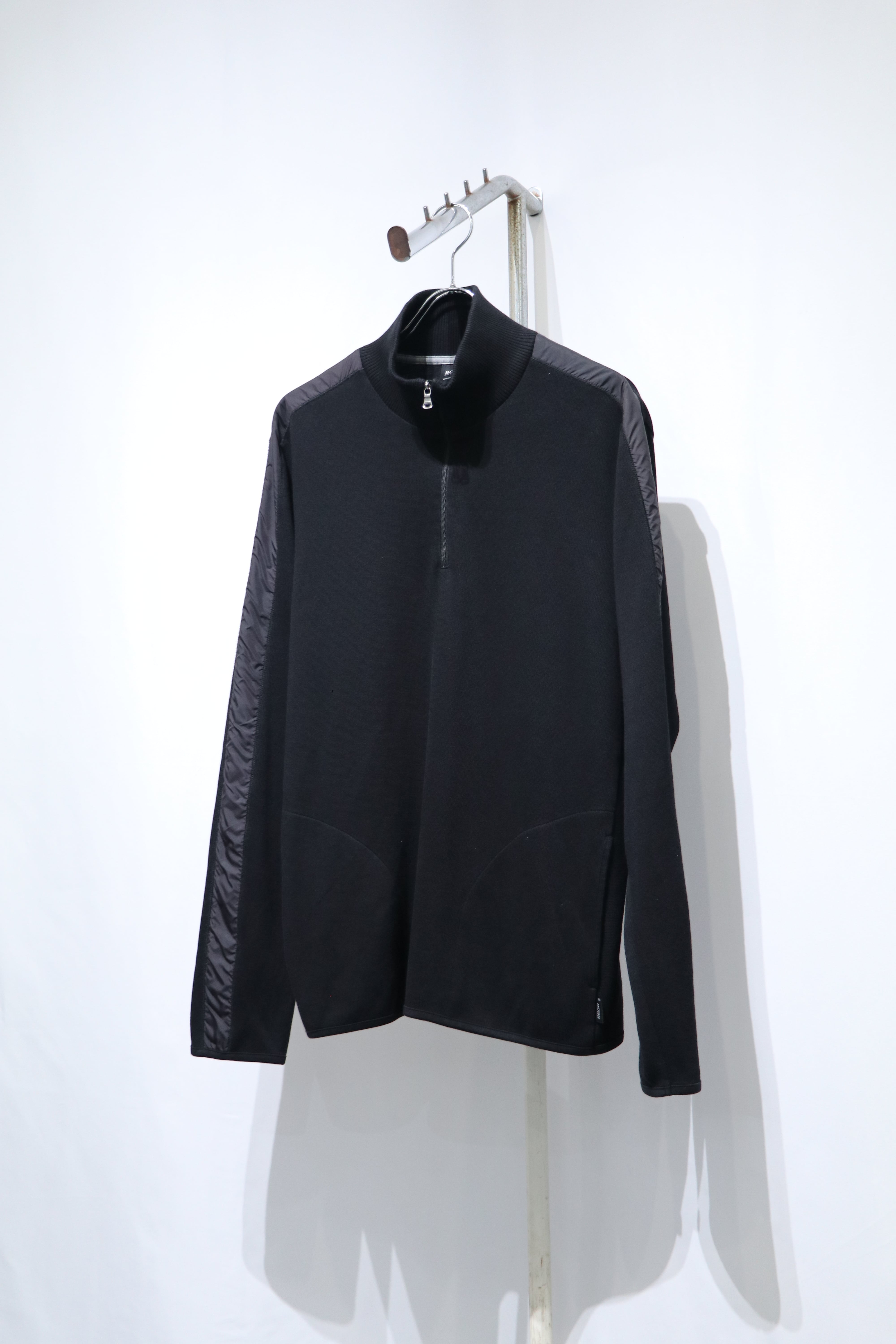 首元はリブ、袖にはナイロンの切り替えが走るシンプルでありながら細かなデザインが効く1着。サイドポケット付きでコットン100%と扱いやすさも◎