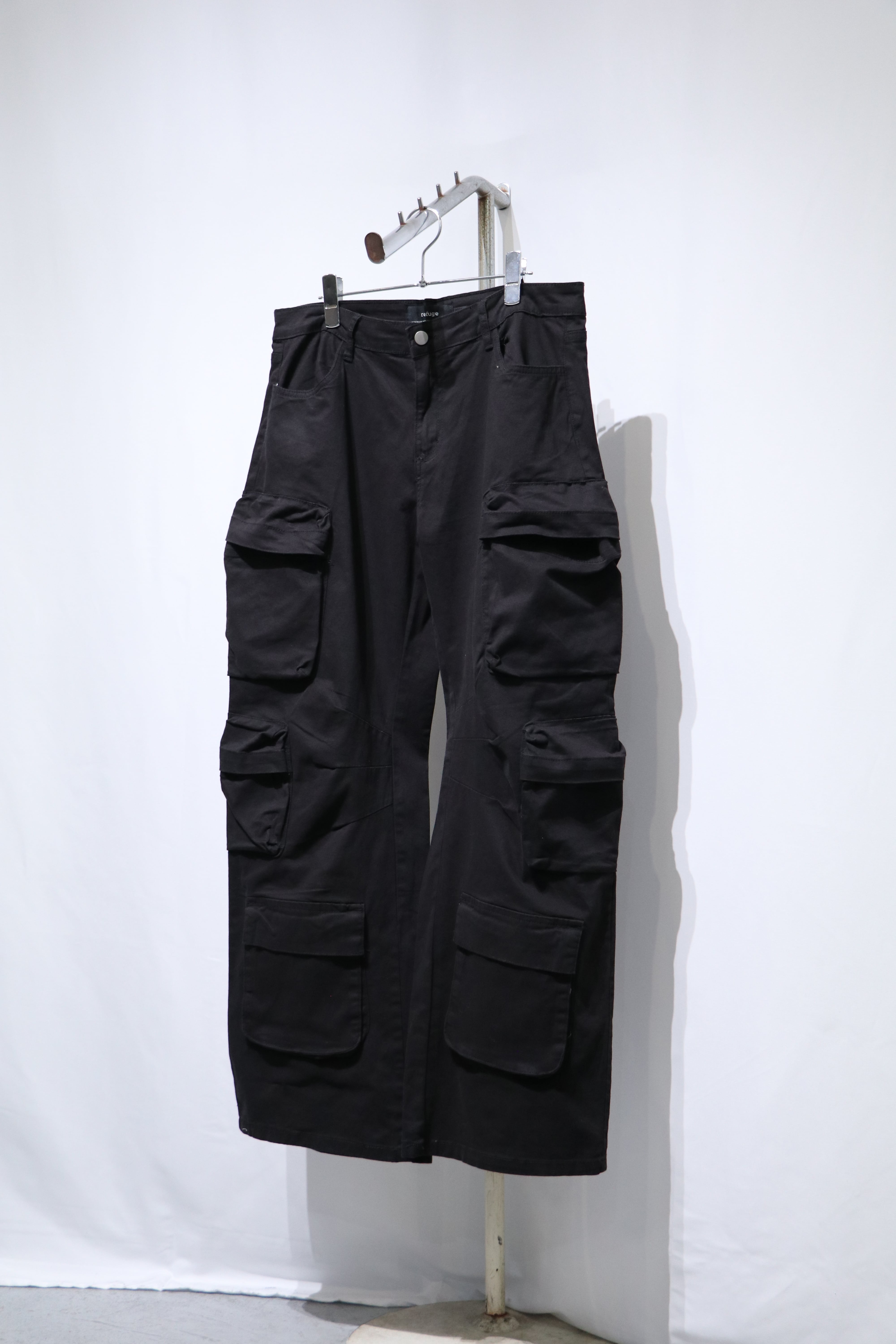 サイドだけでなくフロントにもしっかりポケットが付いておりよく見るカーゴパンツとの差別化が出来ます。ブラックでしっかりワイドストレート間違いなしかと○