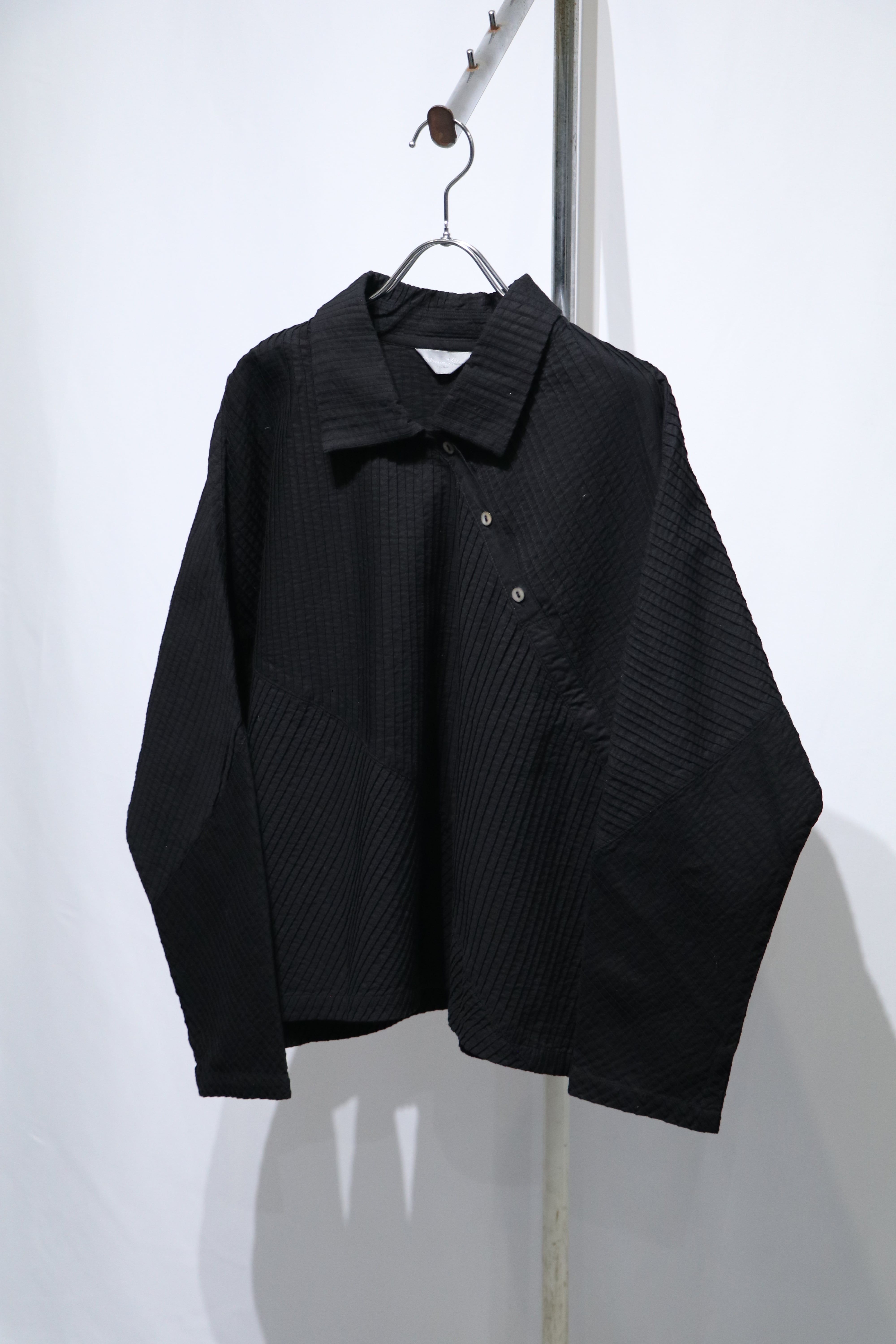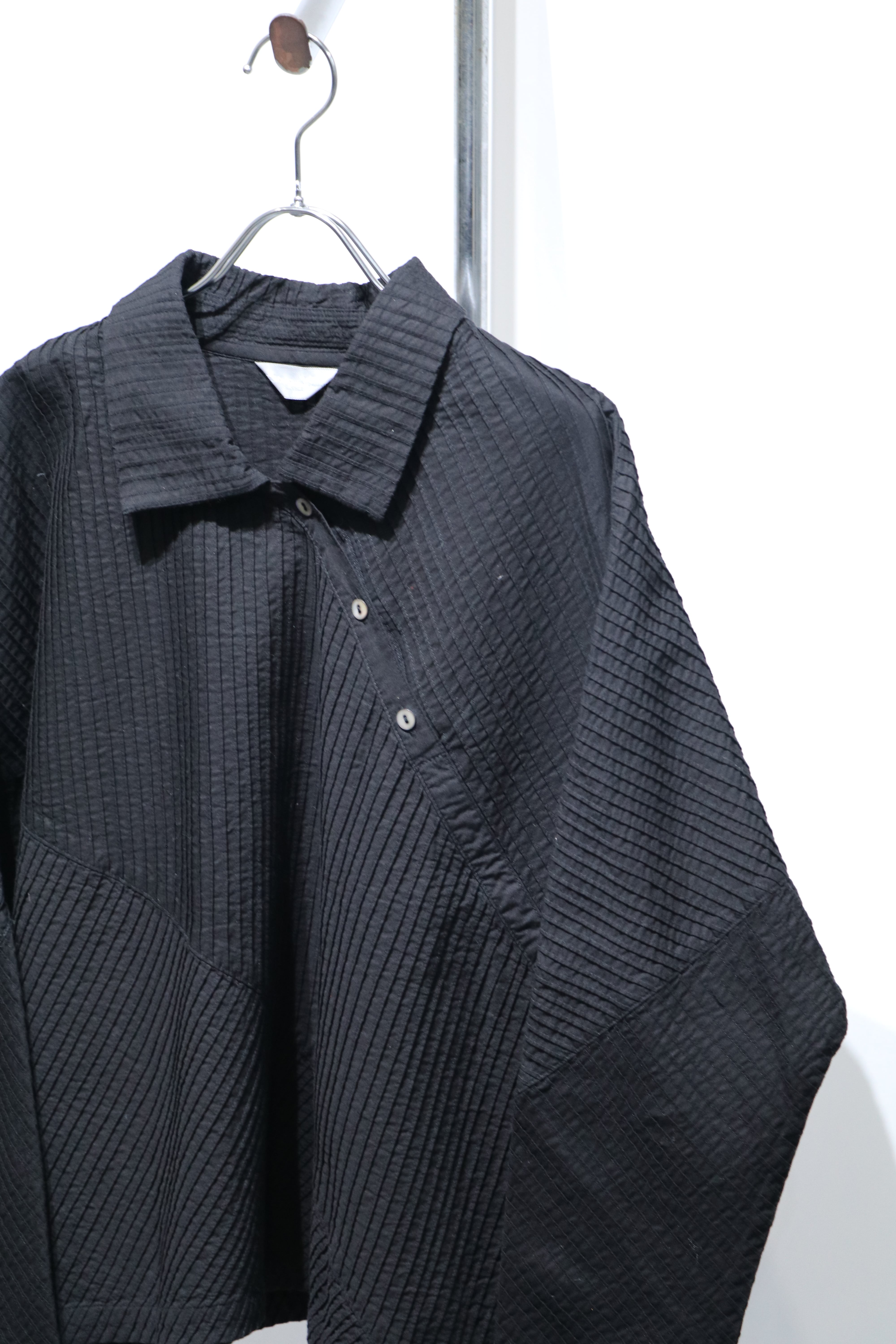初めて見た時これは色んなコーデが出来そうだなと心が躍りました。春夏は1枚、秋冬はレイヤードで楽しめる身幅も兼ね備えプリーツの切り替え、ボタンの位置これでもかと詰め込まれた1枚だと思います。少し厚手の生地感なのでガシガシ着れそうです。