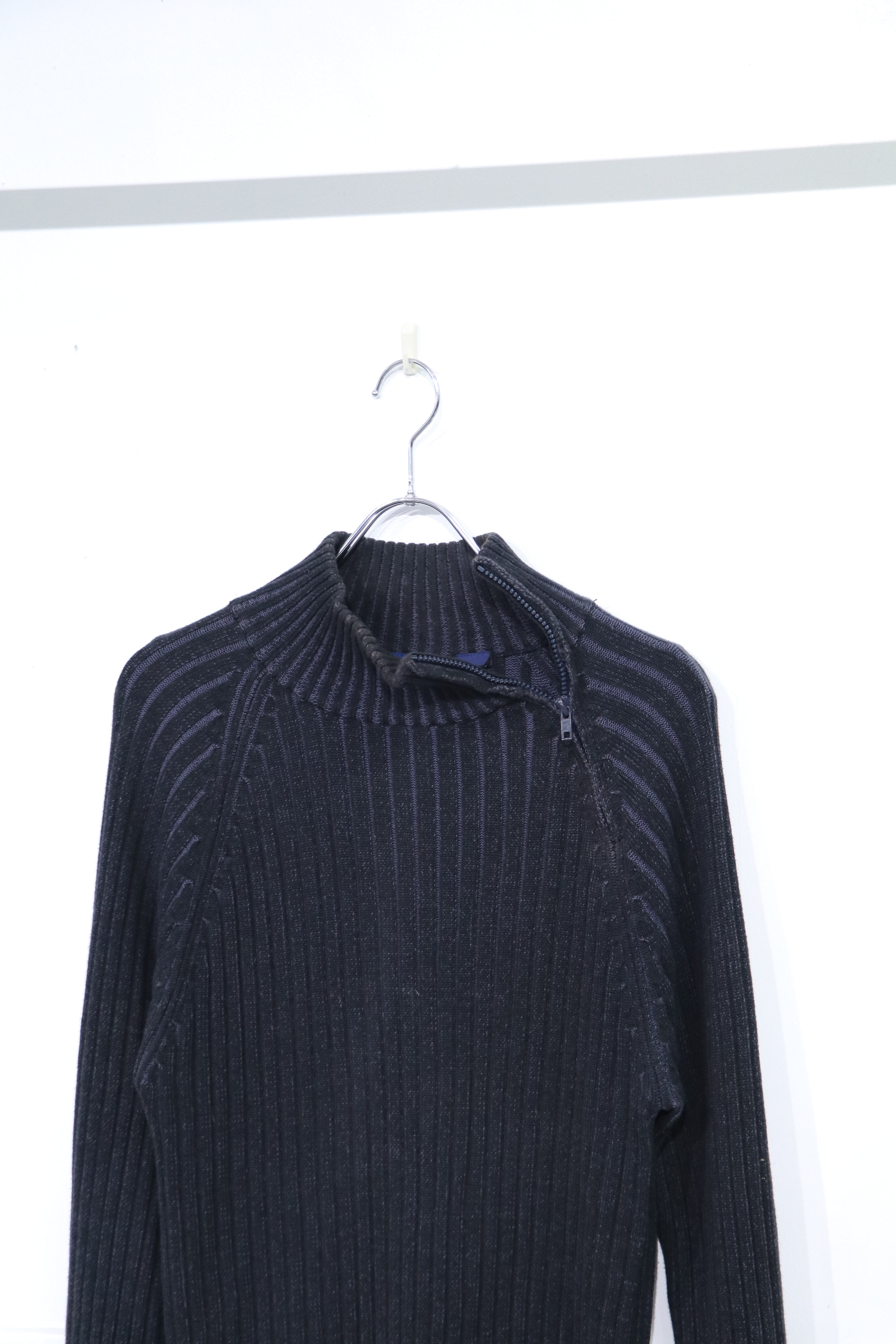 diagonal zip design knit dark blue