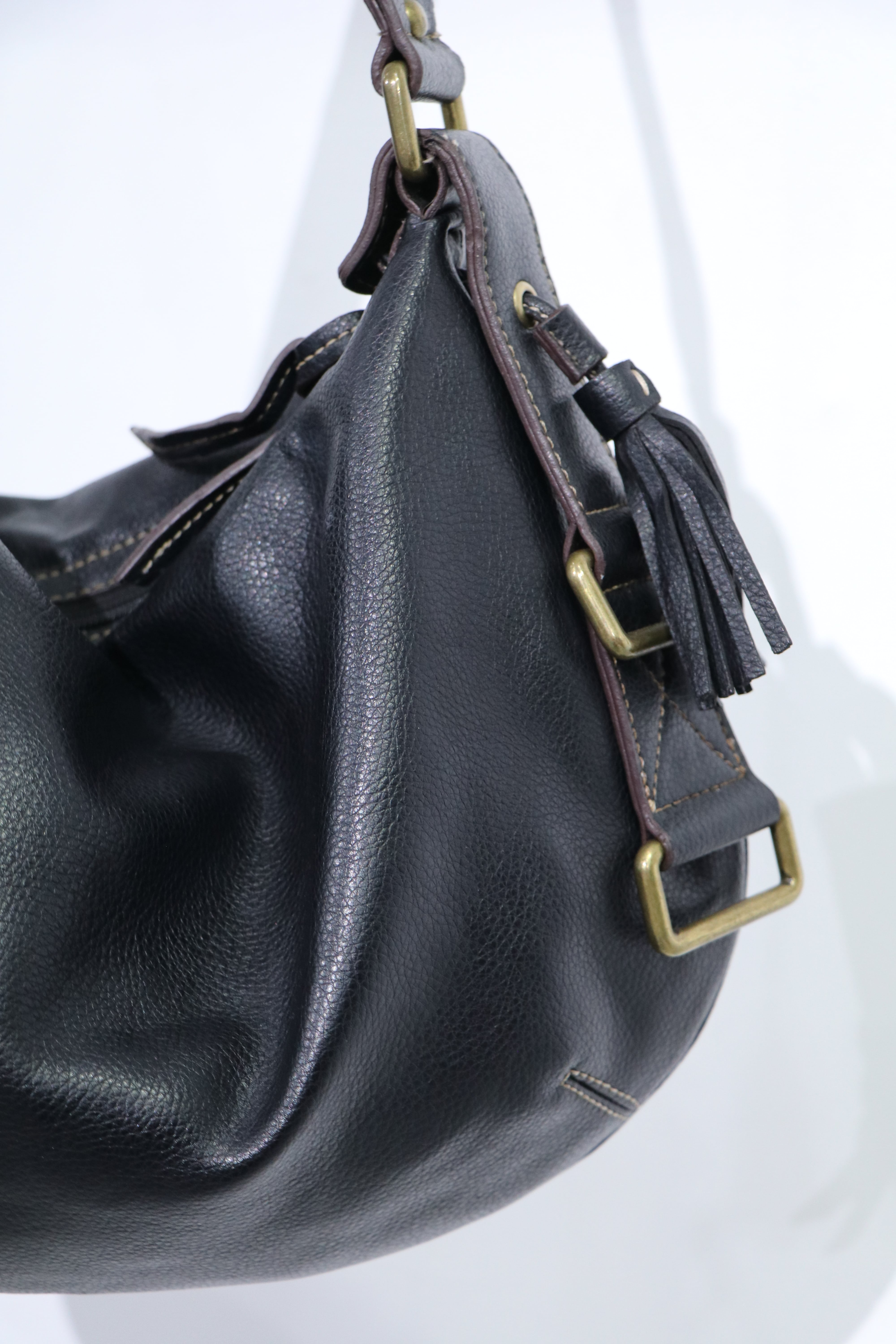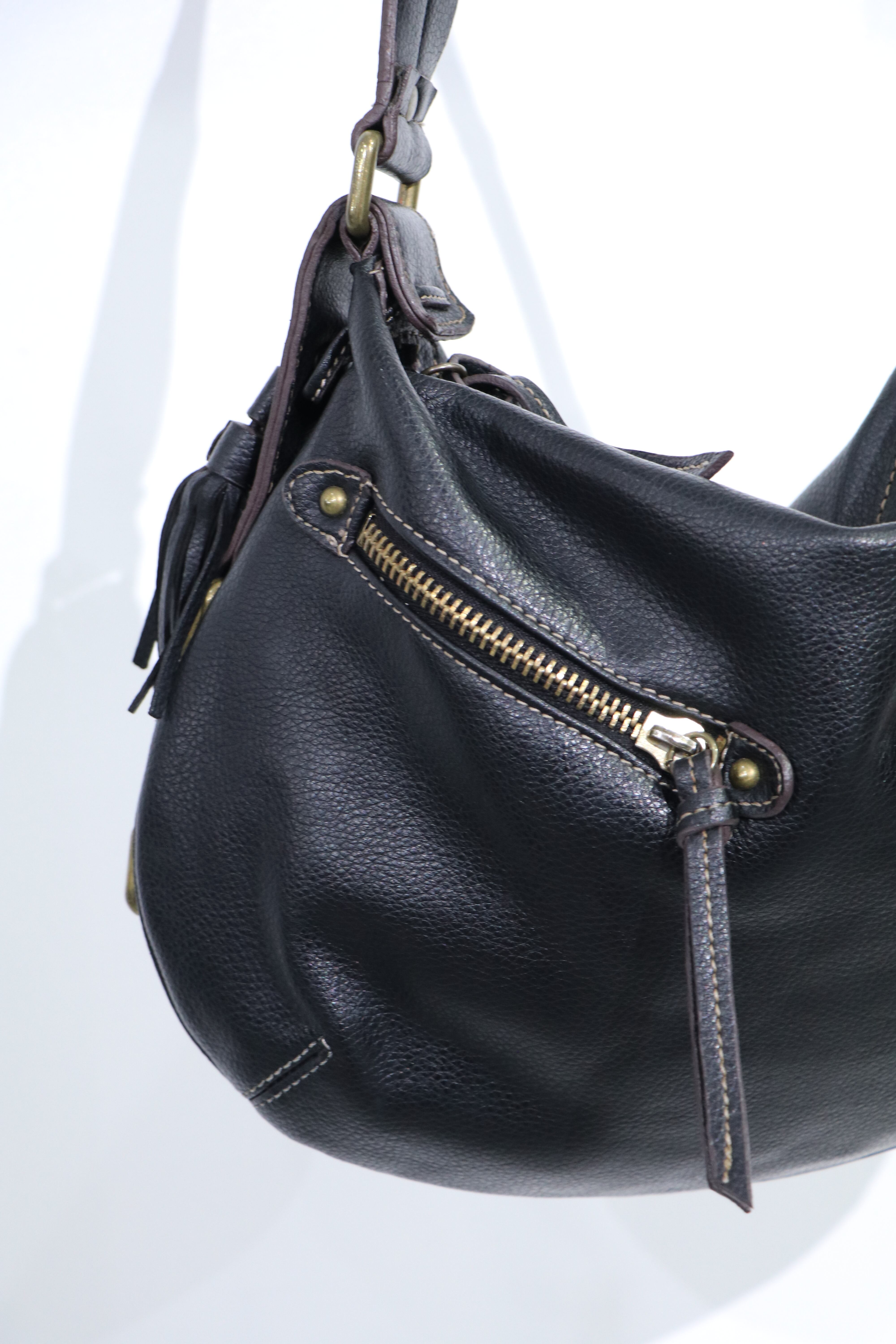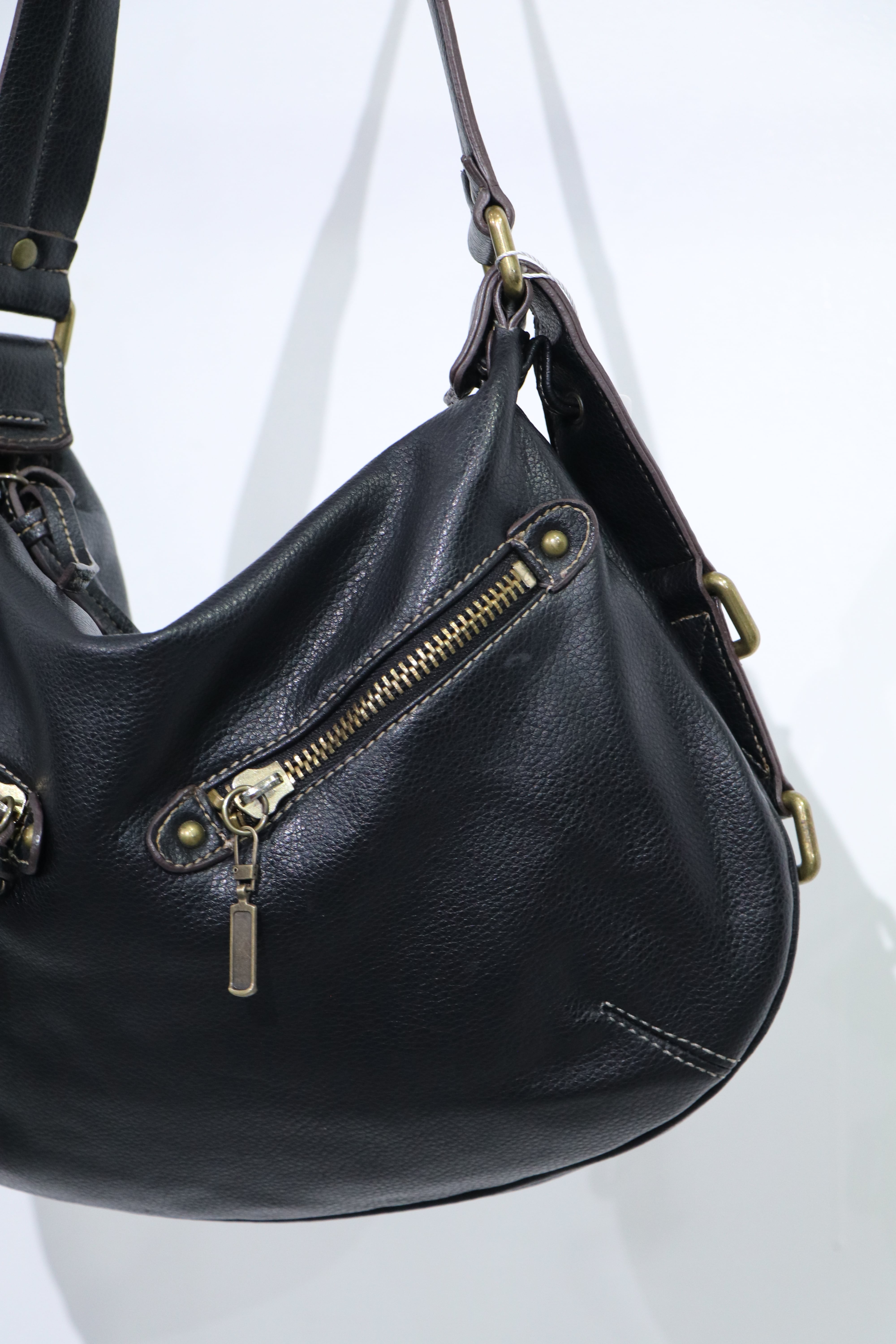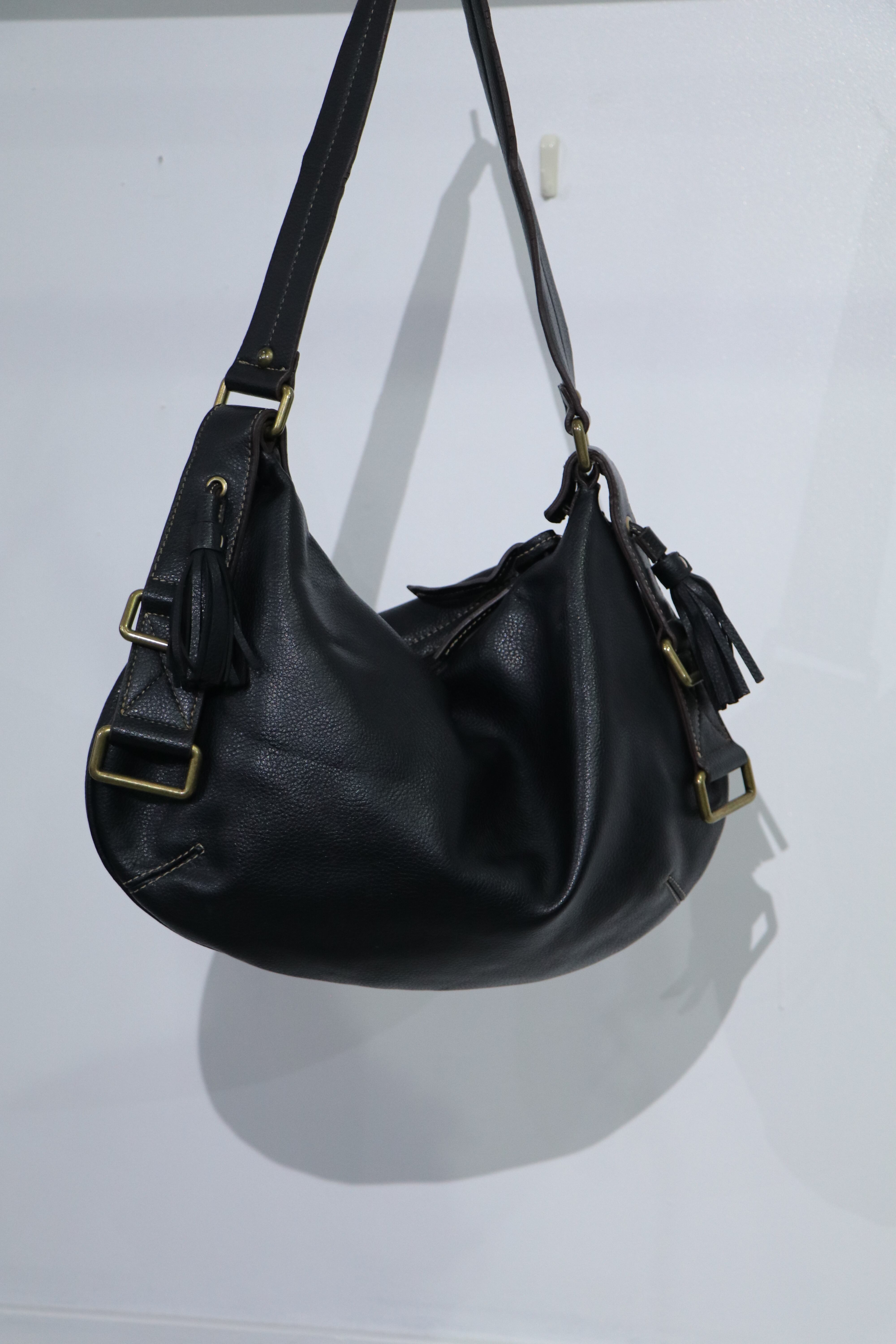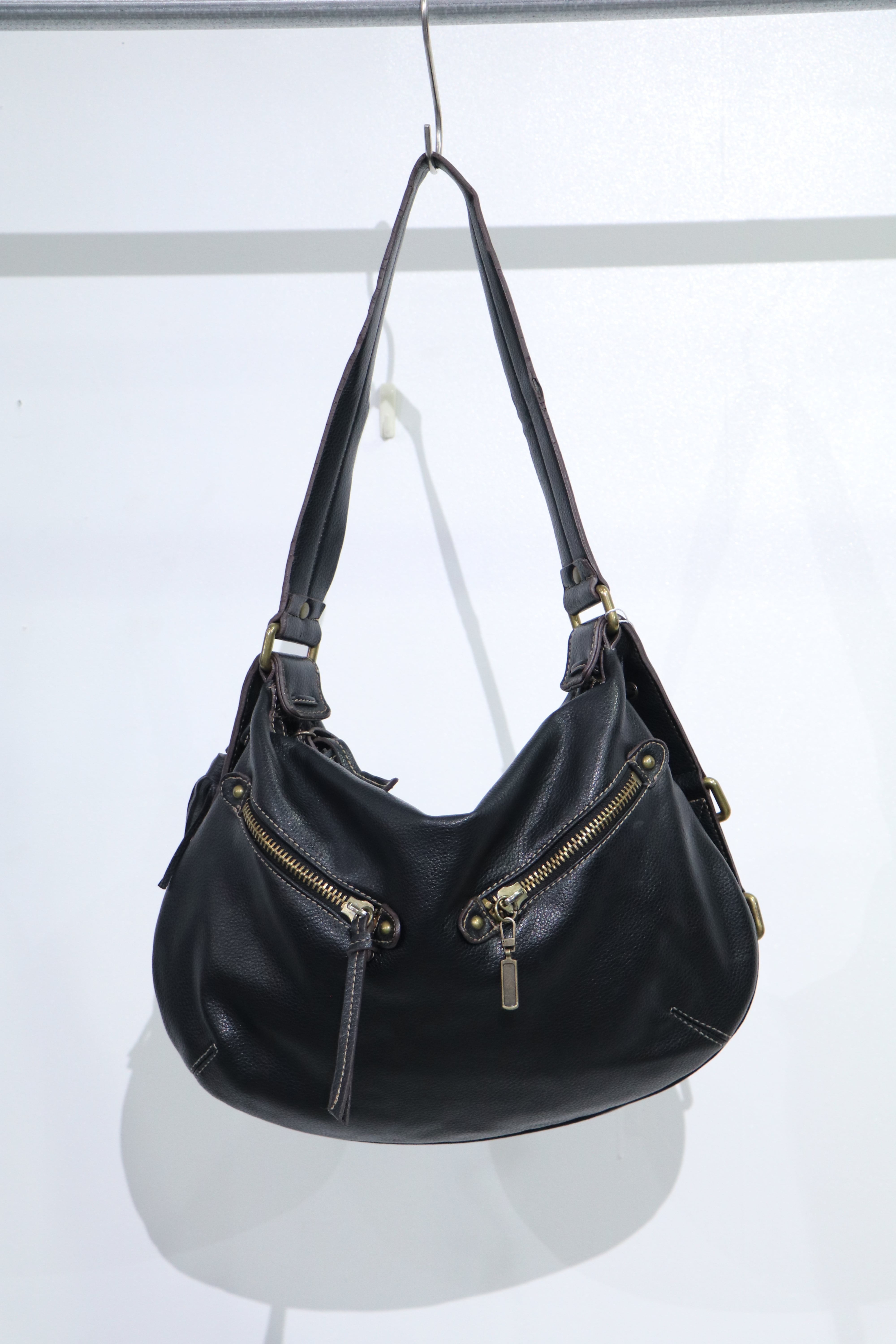 rounded design leather shoulder bag