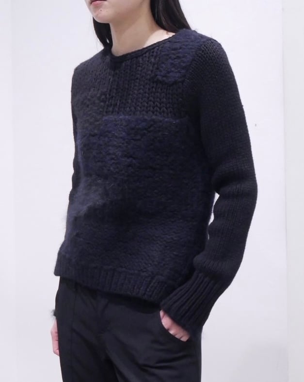 ざっくり編まれたウールボディにアルパカ、カシミア等の贅沢な切替が施されたスパシャルニット。